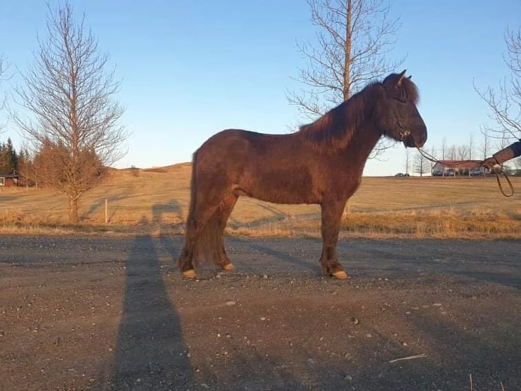 Hrafn is a 3 years old gelding after the famous stallion Hrafnar frá Auðsholtshjáleigu (8,46). Hrafn is really big and beautiful, he is 148 cm on shoulder. He is well built with good gates and movements. Hrafn has a very good mind, he is very cooperative and forward thinking and wants to please the rider. He has never done anything stupid in this 4 weeks of training. All of his gaits are really soft and he’s already showing all gaits. Hrafn is really safe and we think with a little more training he will be a horse for just everyone. Hrafn has a good 1.prize sister and another sister which is 2 years older that is really good and going to a breedingshow next summer. Hrafn and his siblings from the same mother are all with good mind, beautiful and with high leg action.